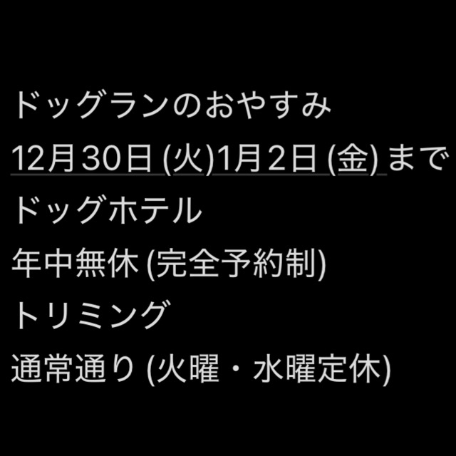 ドッグランのおやすみ 12月30日(火)1月2日(金)まで